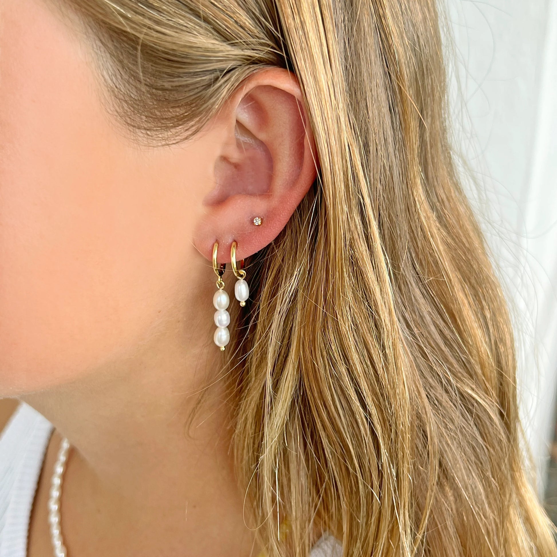 With a tiny pearl drop on a classic gold huggie, the Cordelia Pearl Earrings are everyday elegance and beauty.