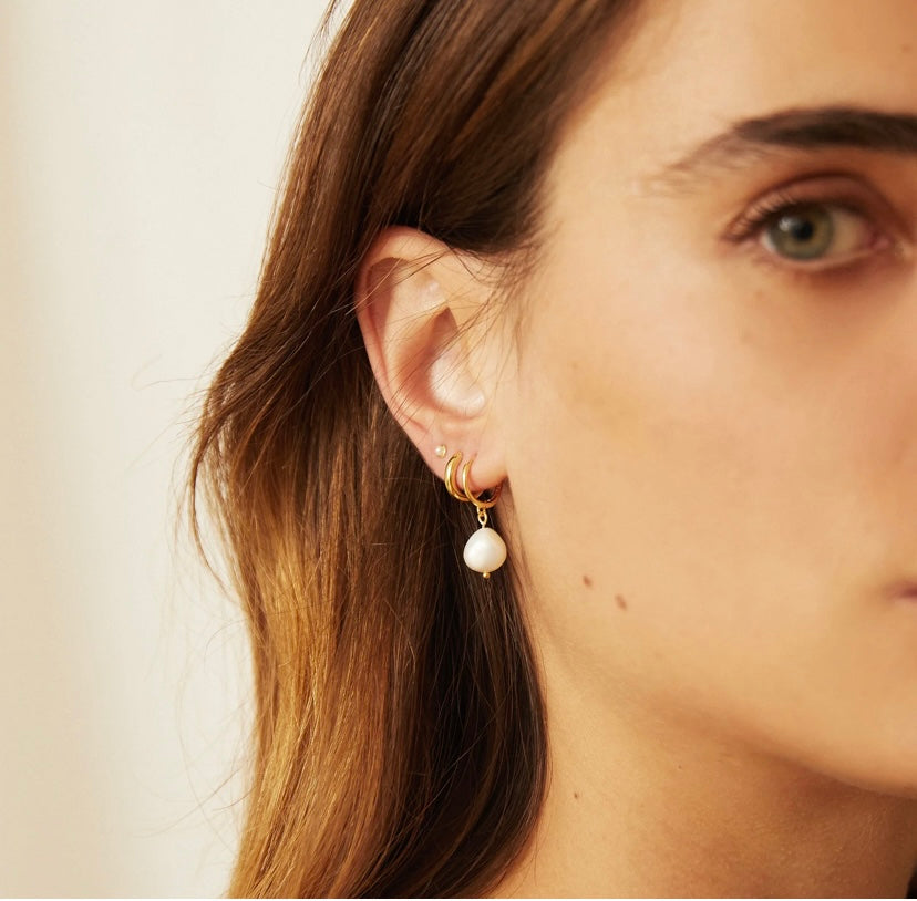 - The Cosette Freshwater Pearl Hoop Huggies are a modern spin on a classic pearl earring. Freshwater pearls drop from 18k gold hoops.