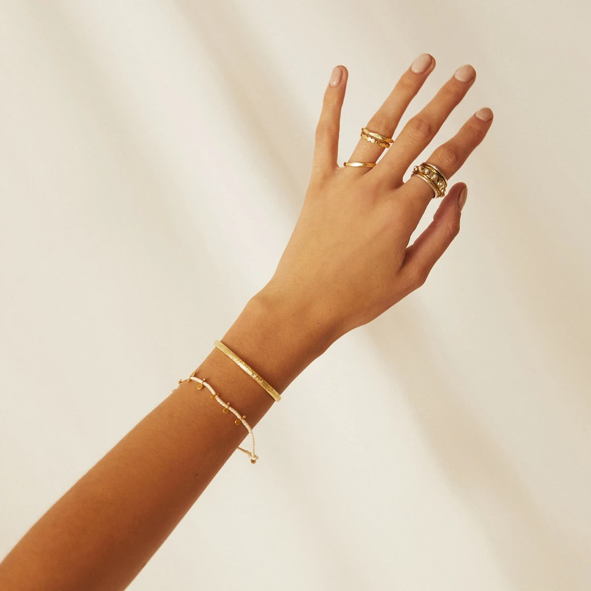 - Everyday style comes to life with our boho chic Jai Bracelet. With an adjustable cotton string to ensure it fits every wrist, this bracelet features crushed gold adornments making it the perfect addition to every bracelet stack!