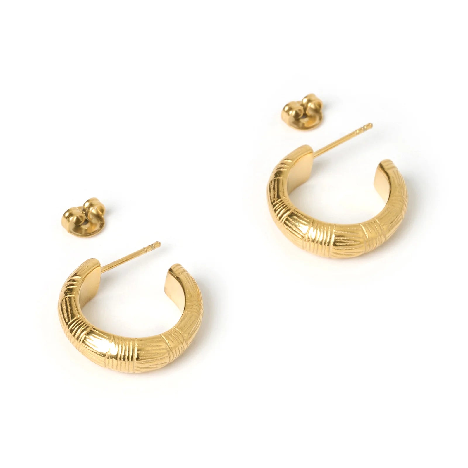 One of a kind in shape and texture, the Sadie Earrings will be sure to turn heads! These glorious golden hoops add a unique style to your look, day or night.