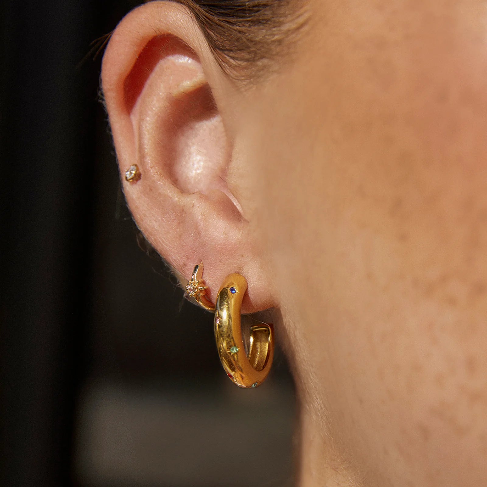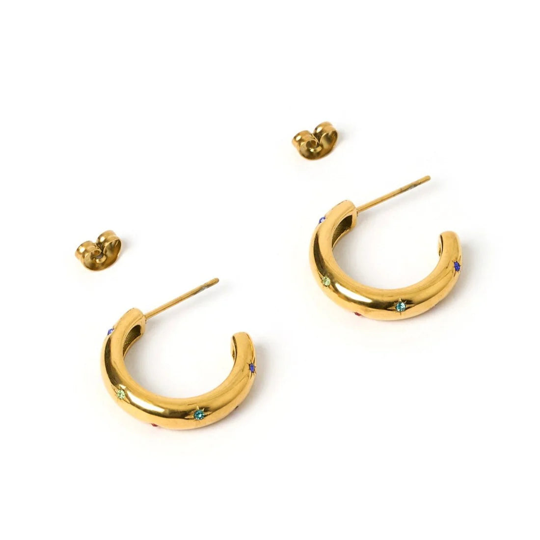 Cute and classy, the Serrano Earrings are the perfect addition to any look, sure to turn heads! These earrings are ready to be stacked and styled to create a fun and colourful daytime look, or to sparkle under the evening stars!14k Gold plated (1 micron plating)