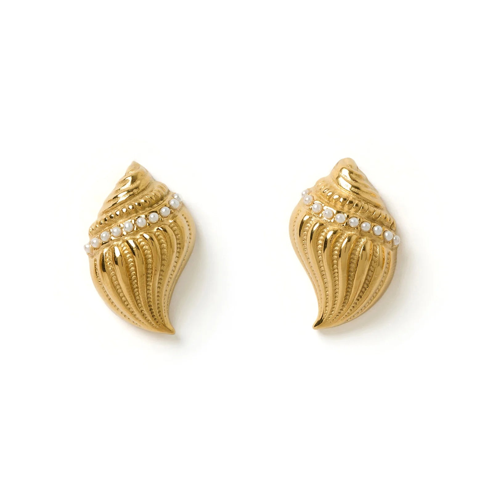 Escape to the ocean whenever you wear the stunning Tully Earrings! Shaped like a charming conch shell and adorned with beautiful pearls, these statement earrings will take you from beach to bar and everywhere in between this summer!