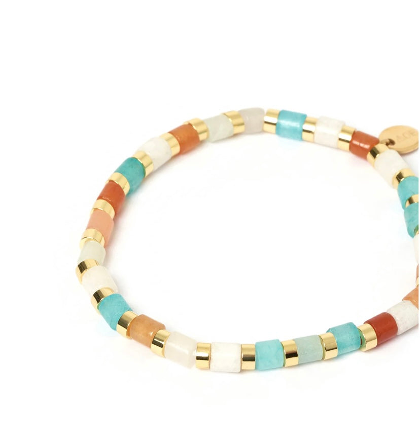 With an easy elastic stretch fit and gorgeous coloured gemstones interspersed with gold, our Vixen Bracelet is the epitome of summer style! Made to stack and mix and match colours, these beauties will soon become part of your daily essential look!