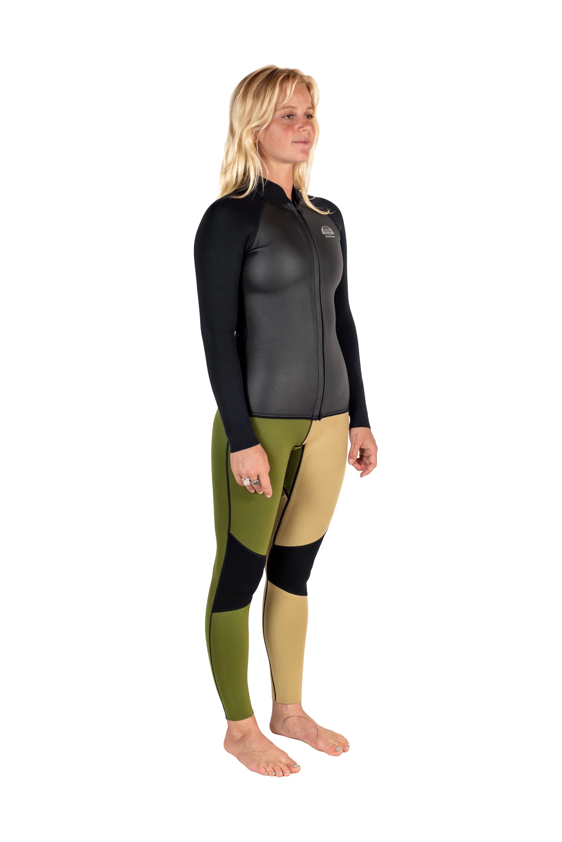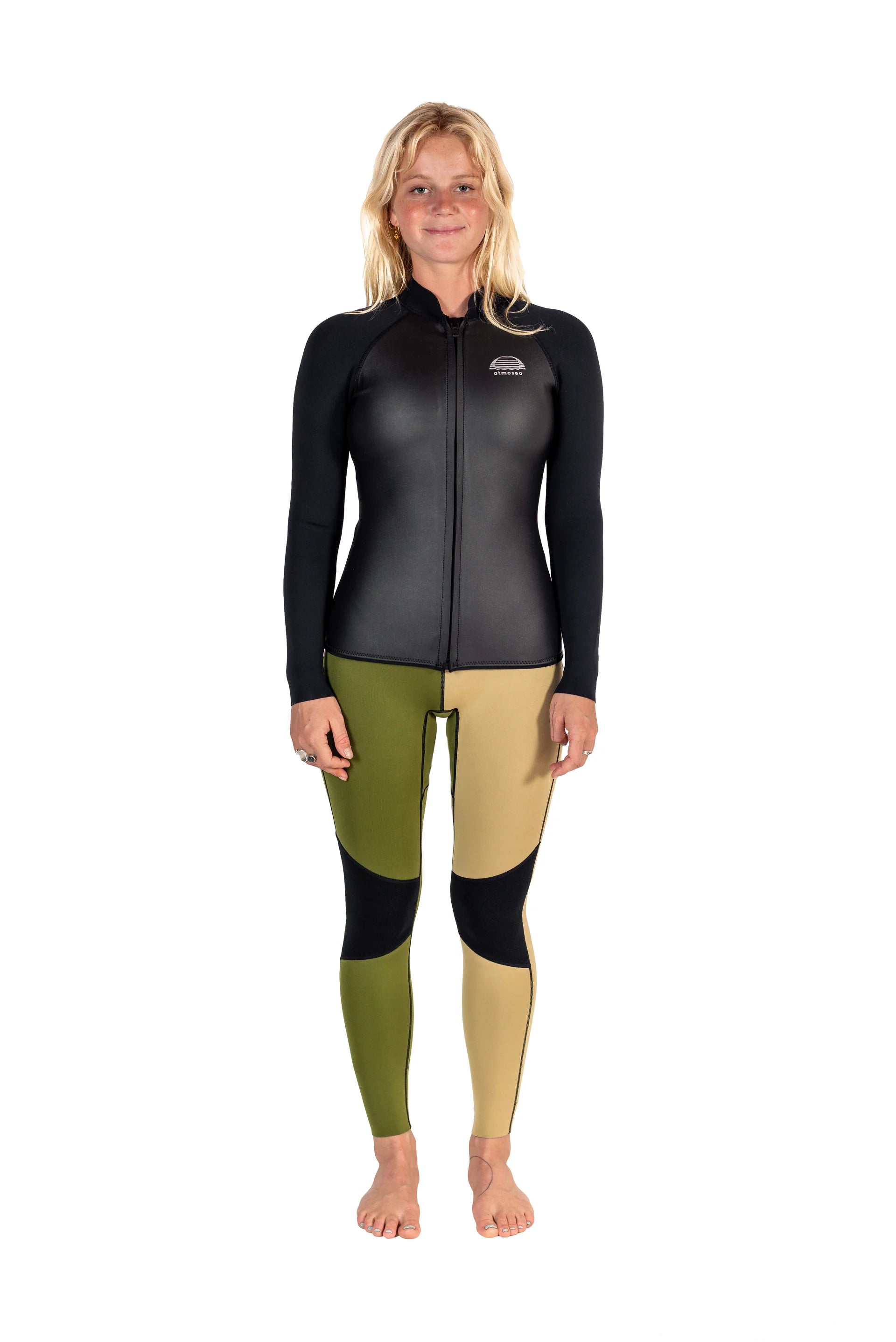 The queenin’ jacket is back. An ideal seasonal addition to your surf wardrobe. Whether it is for those unexpectedly chillier summer mornings or sunny winter days, this front zip jacket is extremely versatile. You can mix and match the jacket with our other suits as well, or just chuck it over the Long Jane for a perfect full suit combo.