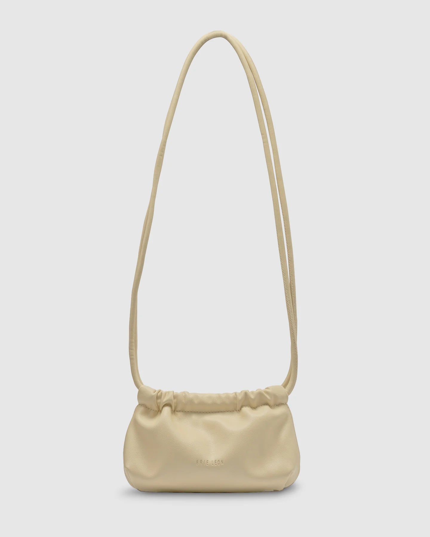 Revised for functionality, the new Alma Mini Bag fits all standard iPhone models. Long straps cinch each side to manually gather the bag, allowing room for the essentials.
