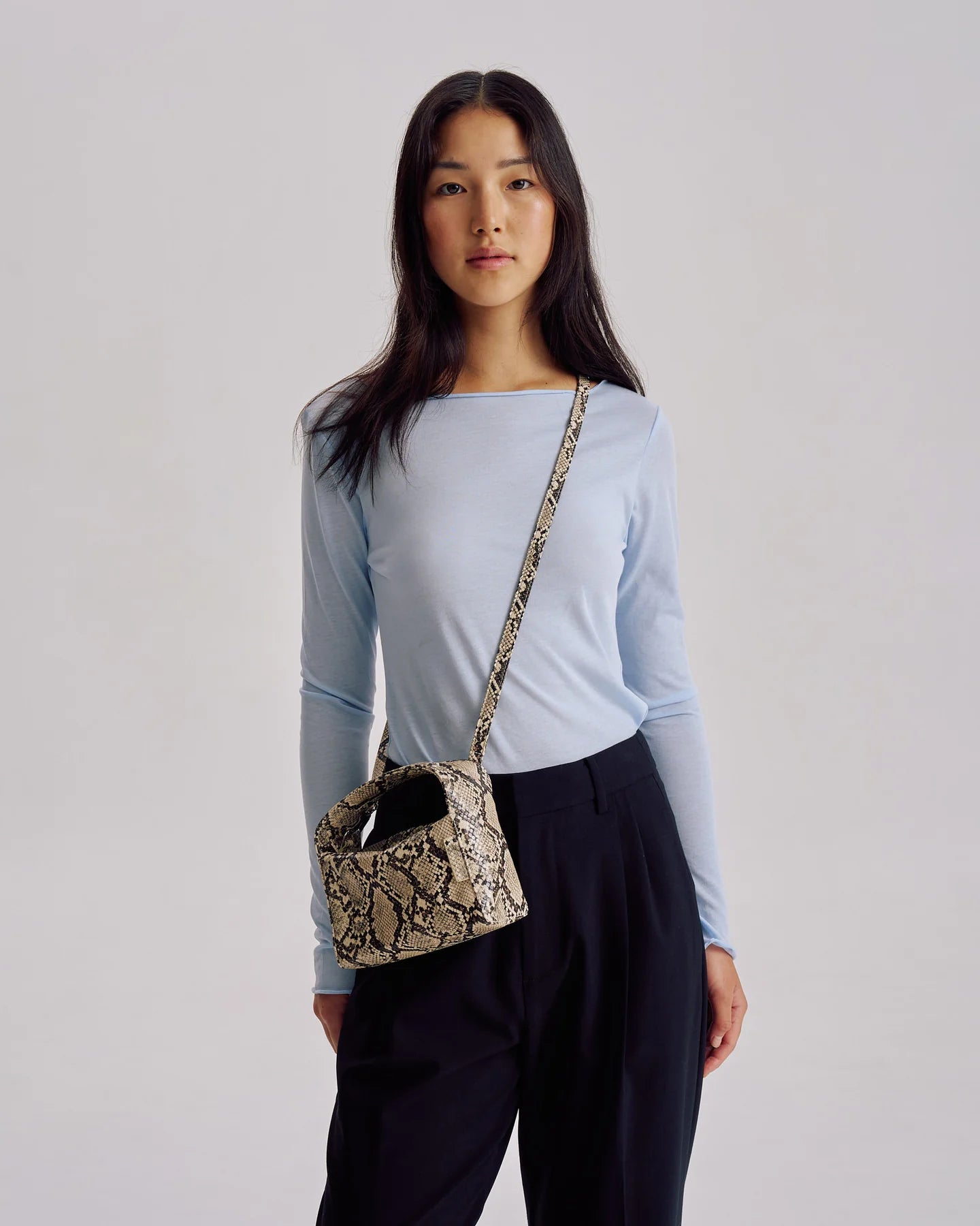 A contemporary essential, the Luca Mini Bag features a sleek yet organic structure. This boxlike look is unassuming in nature yet unforgettable in appearance, making the ideal event bag.