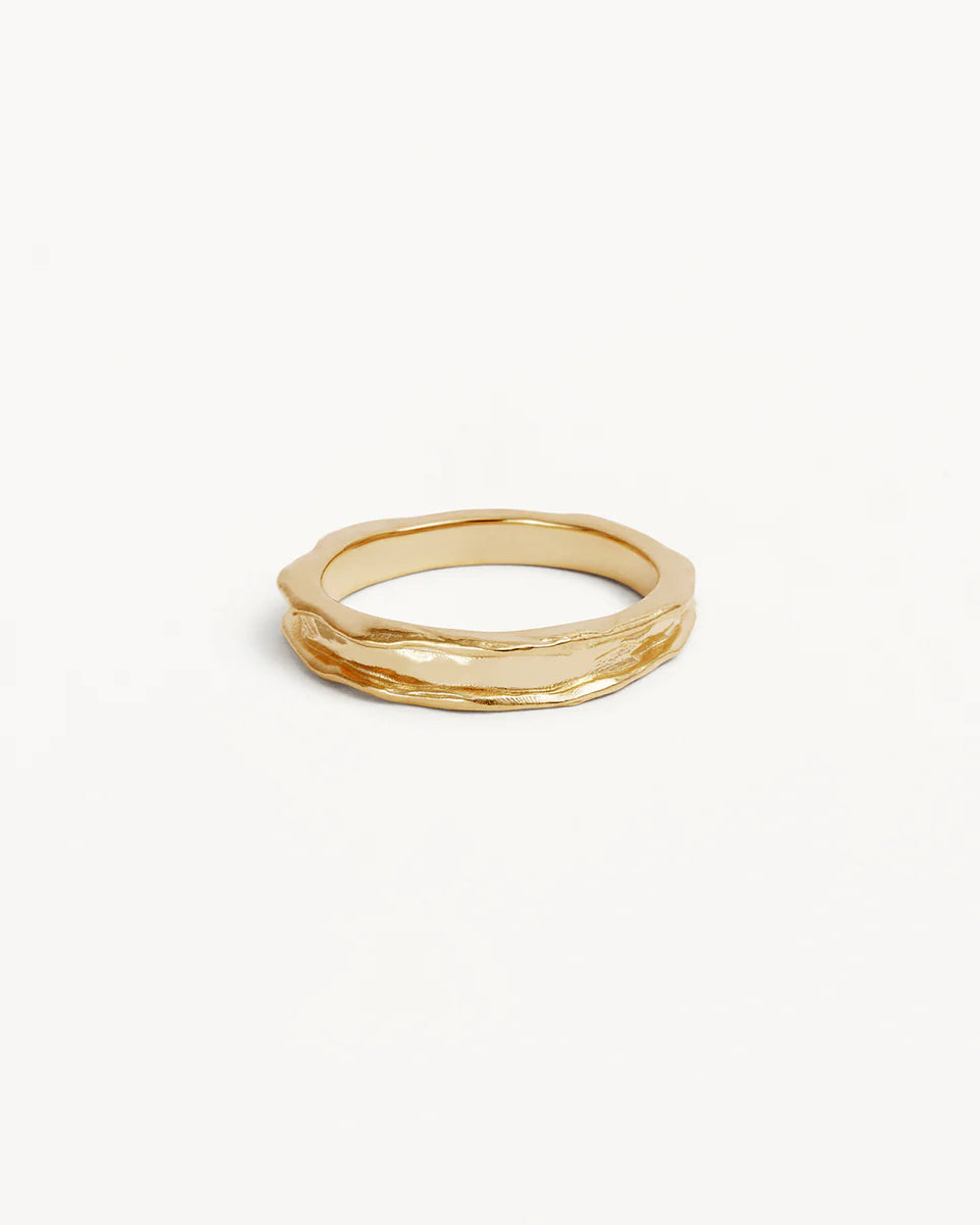 Inspired by the rippling tides and endlessly changing seascape, our 18k Gold Vermeil Beneath the Sea Ring is the perfect stacking ring. This band ring features a battered, textured finish and organic lines.