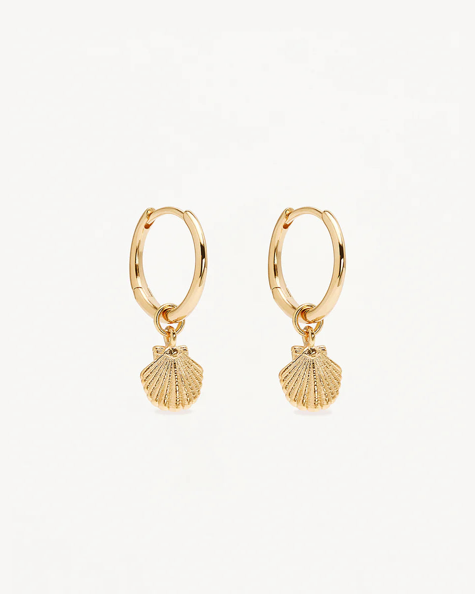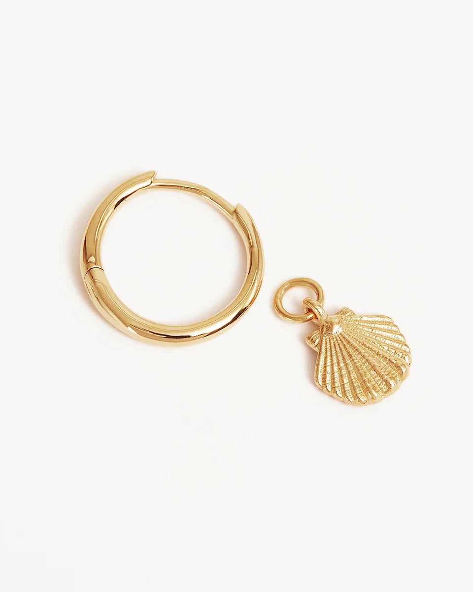 A symbol of growth and self-discovery, our 18k Gold Vermeil By the Shore Shell Hoops are designed for those of a journey of transformation. Featuring a textured, removable pendant, this classic hoop earring is perfect for everyday and occasion wear.