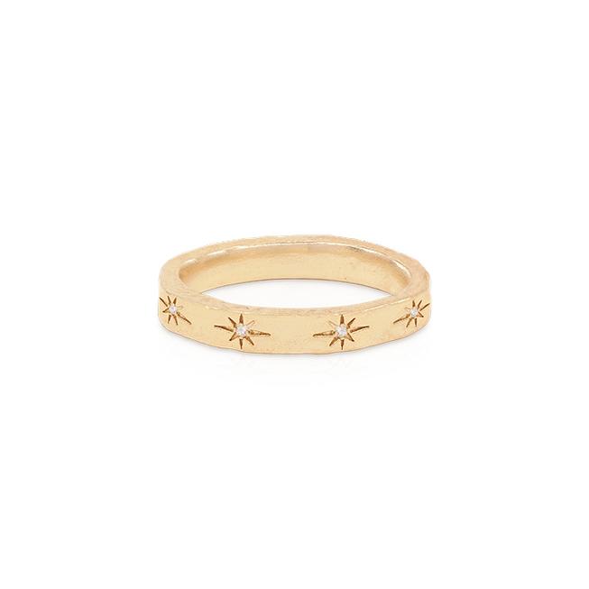 Layer yourself in the heavens with our crystal encrusted Stardust Ring, a subtly battered adornment inspired by the night sky and the celestial bodies that eternally guide us.