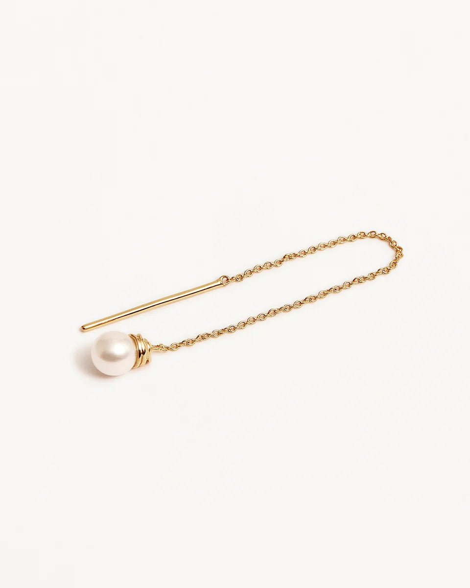 Embrace the gentle rhythm of life with the serene energy of a natural pearl in our 18k Gold Vermeil Whispers of Tranquillity Pearl Thread Earrings. These delicate threader-style earrings hero pearls that have been specially sourced, sorted and chosen for their colour, lustre, and shape.Let these delicate, one-of-a-kind earrings guide you toward inner peace and balance.