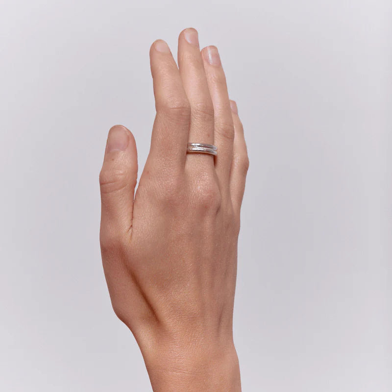 Certified recycled sterling silver. Band: 0.5 - 0.6cm
