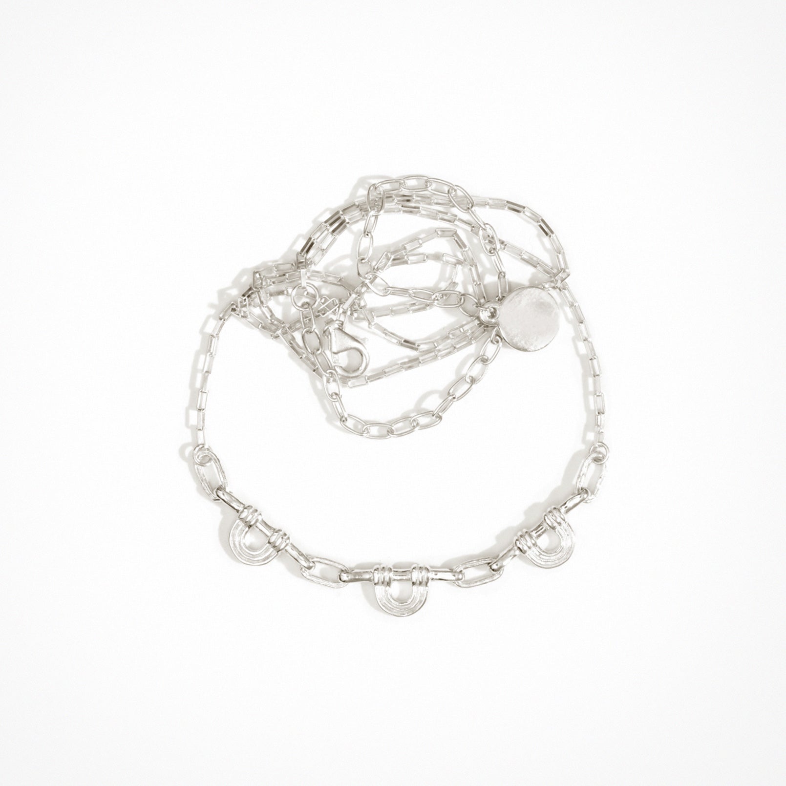 The Renata Arch Necklace in ethical 925 Sterling Silver is a longer style choker chain, sitting delicately across the collar bone. The ancients considered the act of passing through an arch to be symbolic of rebirth. Named from the Latin word for reborn, the Renata Arch Necklace speaks to the possibility of new beginnings.