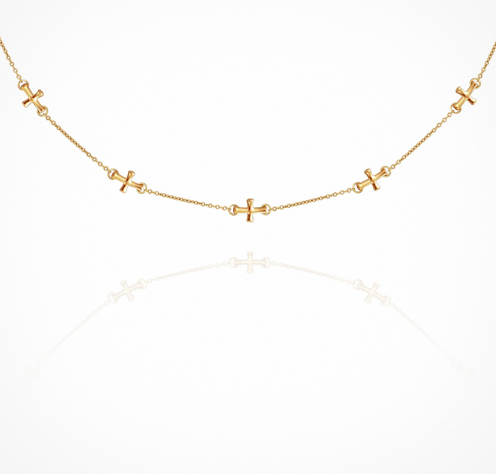 The most prolific of all ancient symbols, the cross tells of the influence of heaven, calling mortality to the nobility of higher truths. Our cross brushed 18K Gold Vermeil necklace cascades four delicately placed crosses from left to right, as a representation of the divine union of male and female, heaven and earth, yin and yang, and lastly, the solar and lunar ascendants.