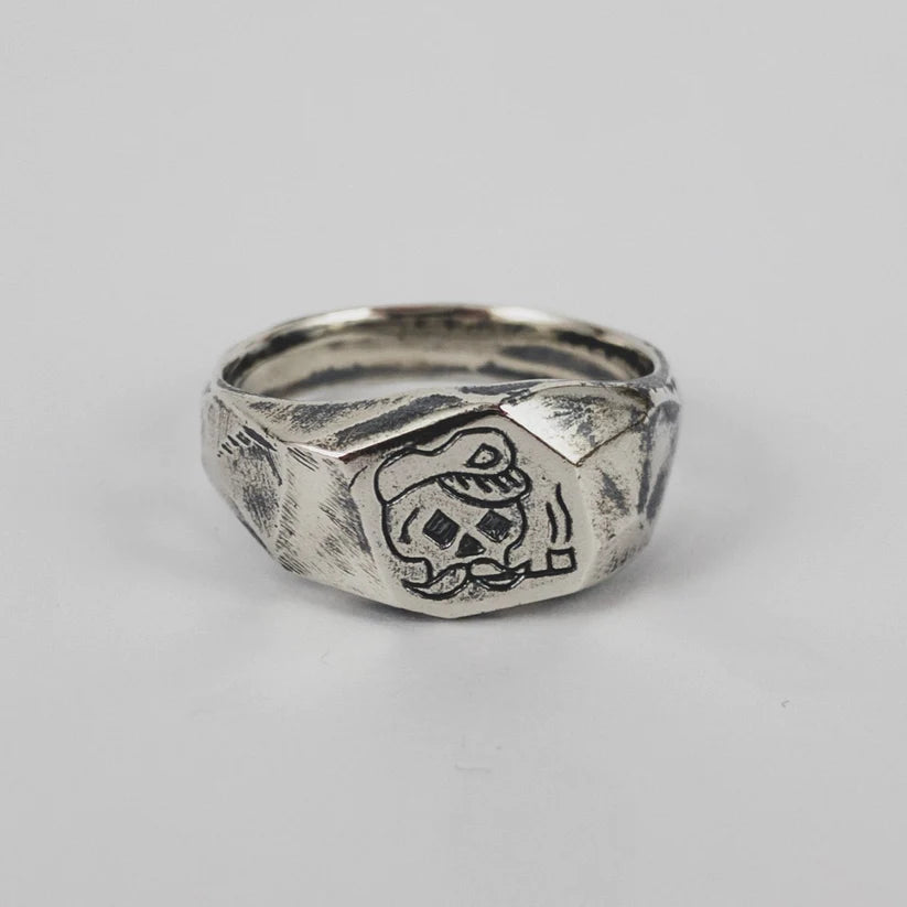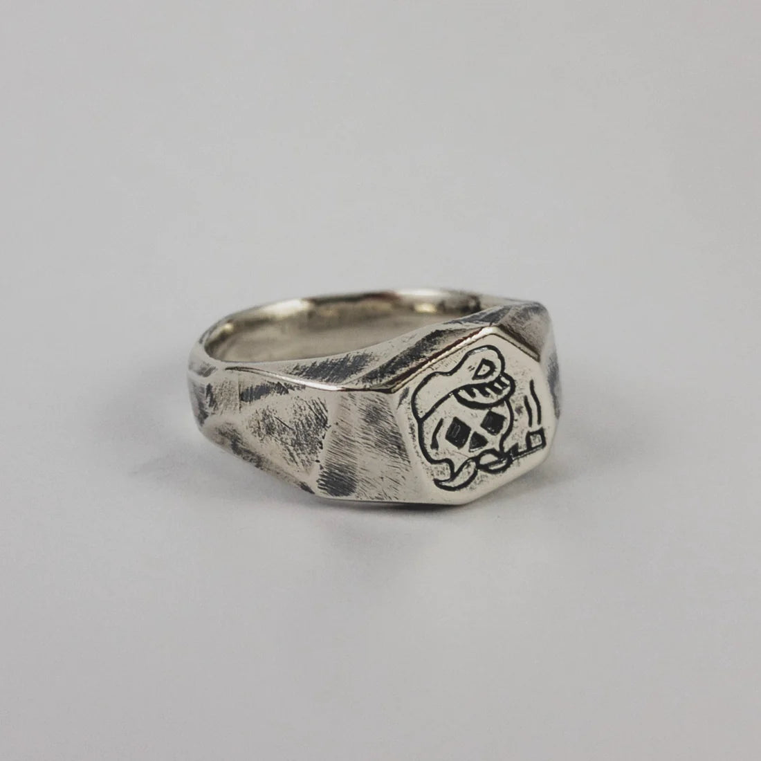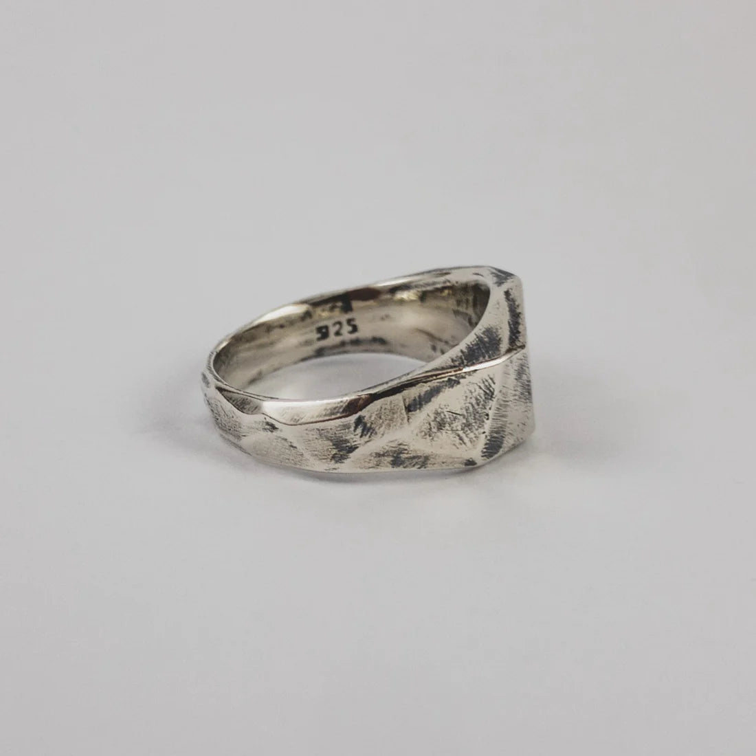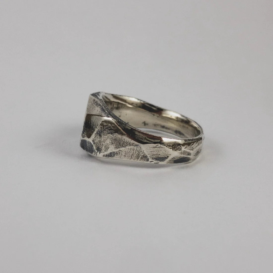 Hand carved and cast in recycled 925 sterling silver ring with oxidised, tumble and hand polish finish.