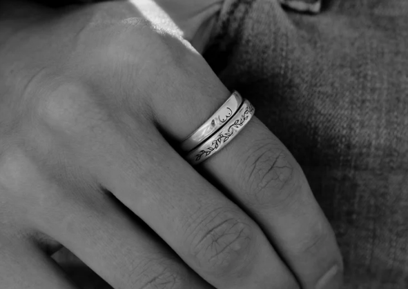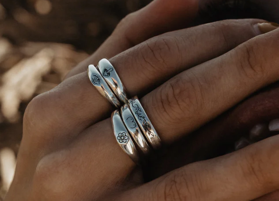 Inspired by Stick N' Poke tattoo designs the Ivy stacker ring is hand carved by us in wax and created using the "lost wax method" in sterling silver ring with oxidised, tumble and hand polish finish.