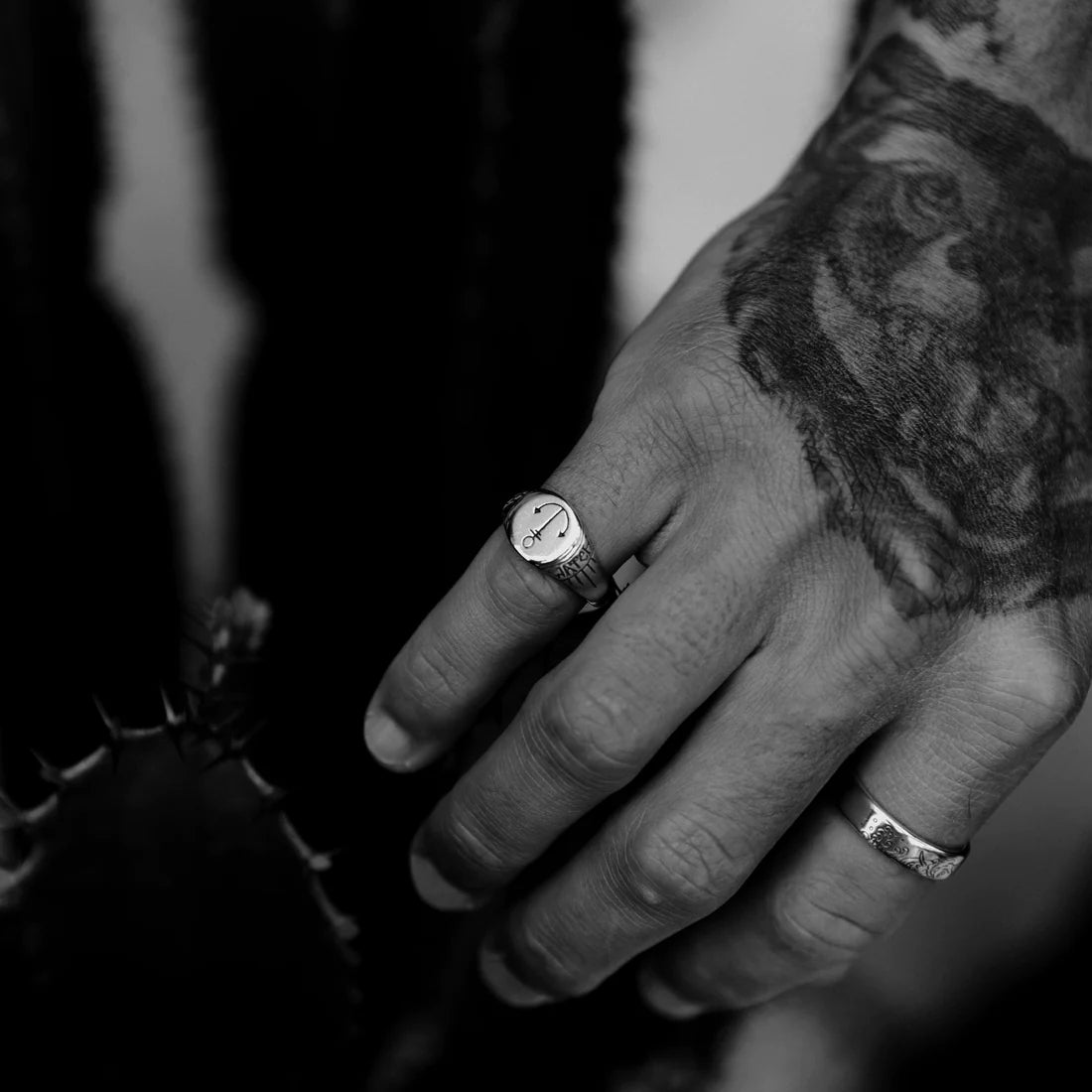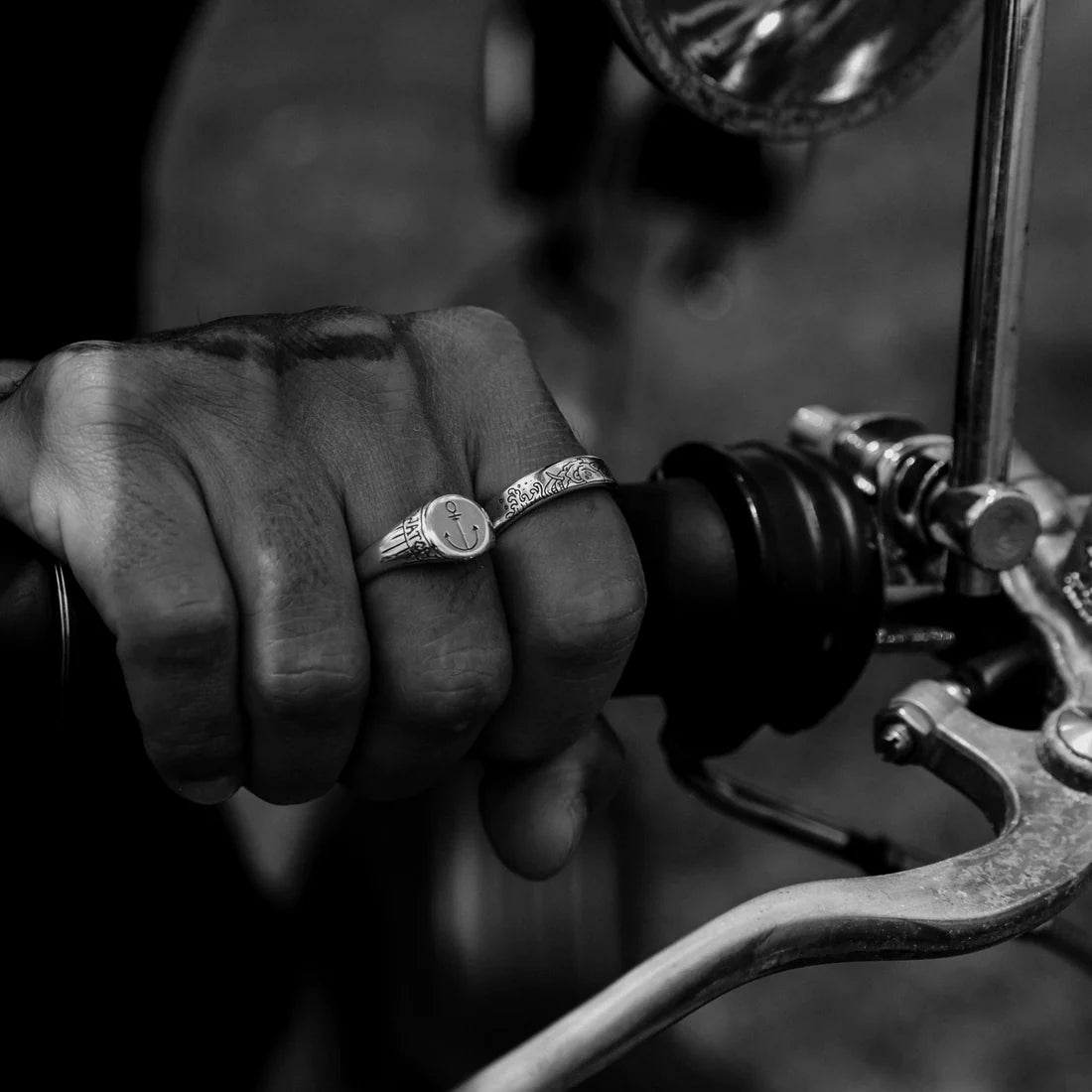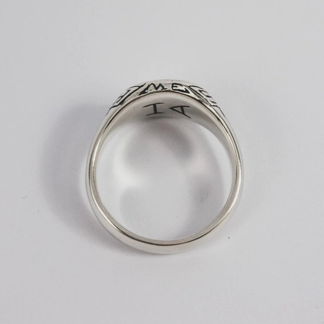 Hand carved and cast in recycled 925 sterling silver ring with oxidised, tumble and hand polish finish.