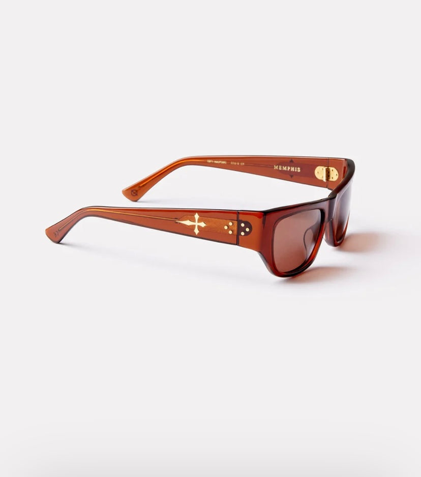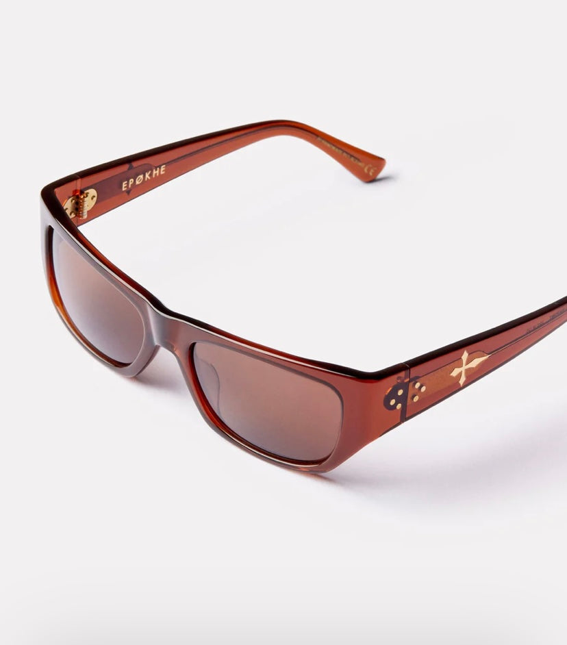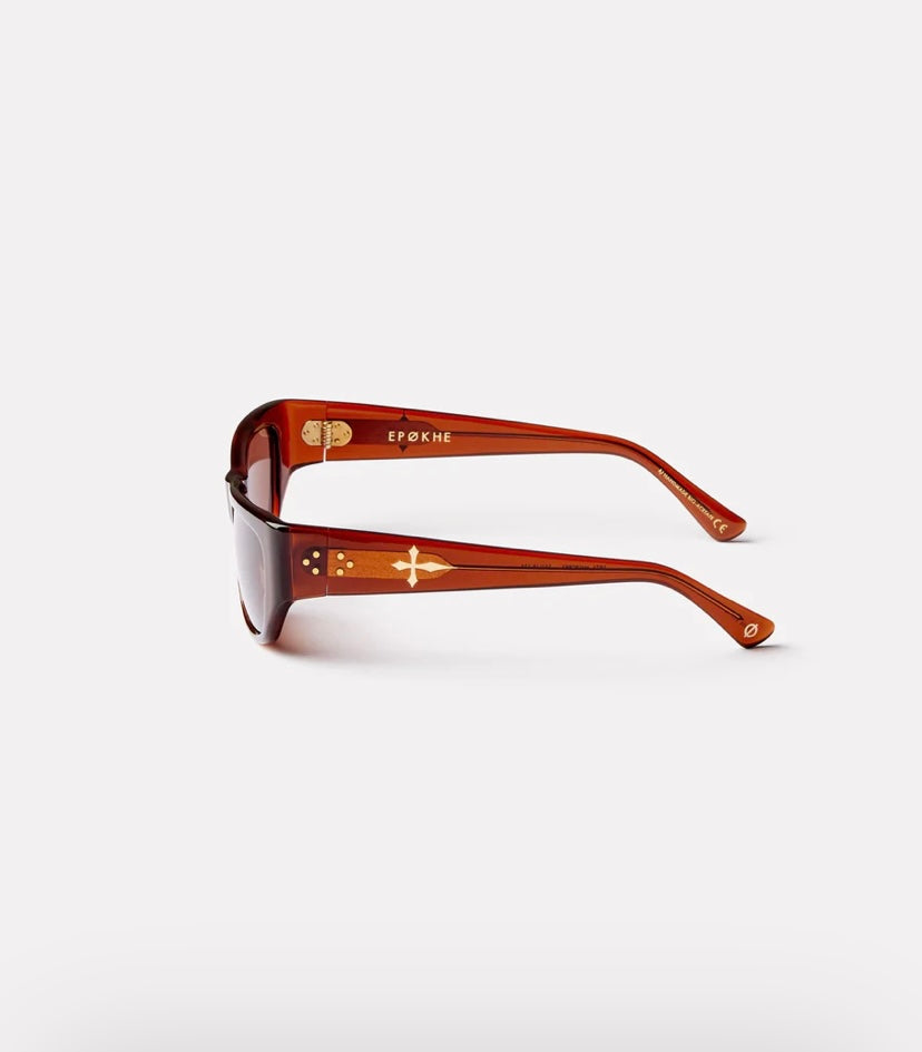 The Memphis sunglasses by Epokhe are a modern silhouette boasting a nostalgic 90's vibe. This statement piece has been crafted using the highest-quality bio-acetate to ensure a lightweight and comfortable fit. The stand out features of this frame are the gothic diamond detailing on the upper stem of the temples that balance this design in a retro yet modern way.