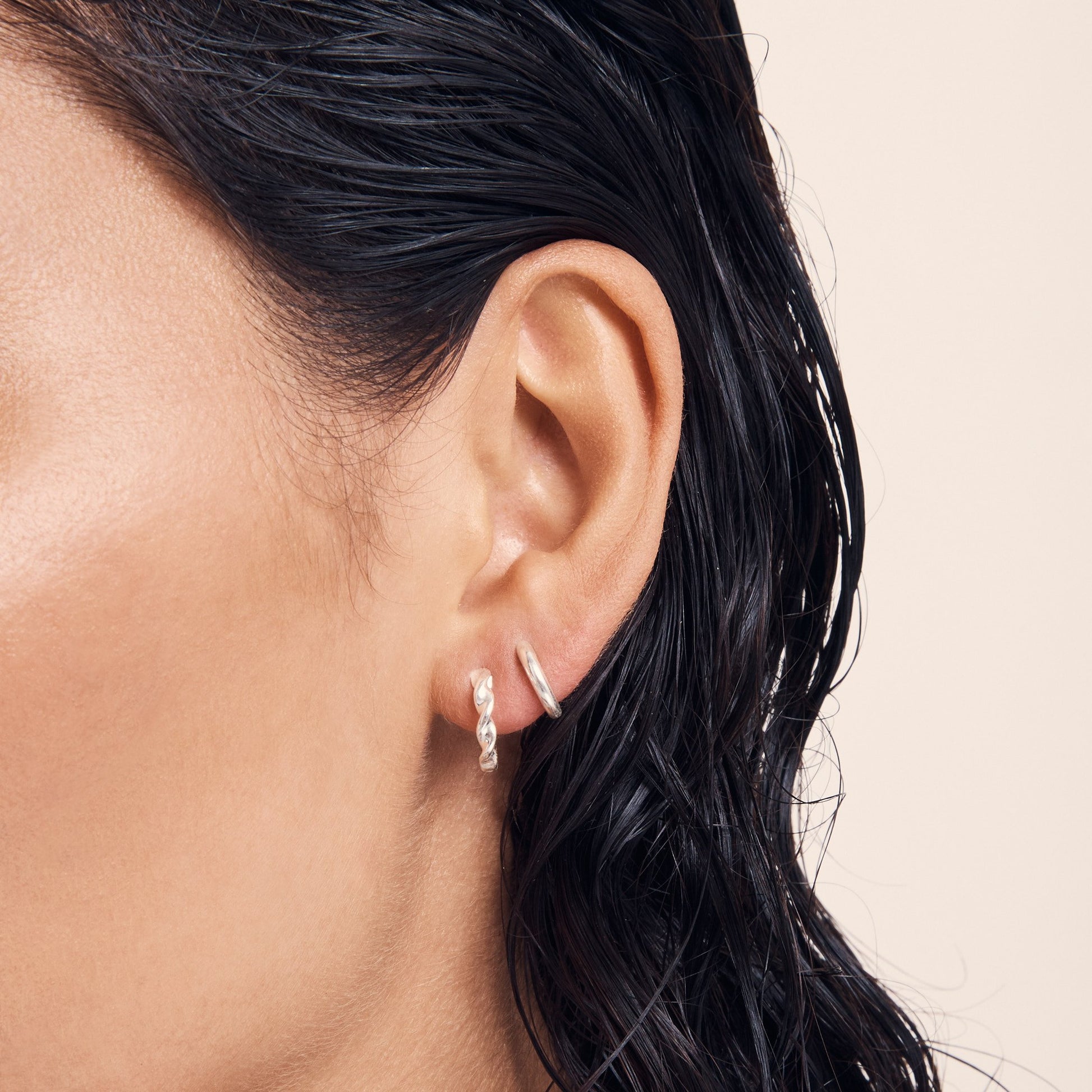 The Helix Hoops in Ethical 925 Sterling Silver are a contemporary update on the classic huggie, referencing the spiral pattern of the Helix found throughout the natural world - in galaxies, weather patterns and DNA. The Helix Hoops are a symbol of resilience and a reminder we are connected to all around us.