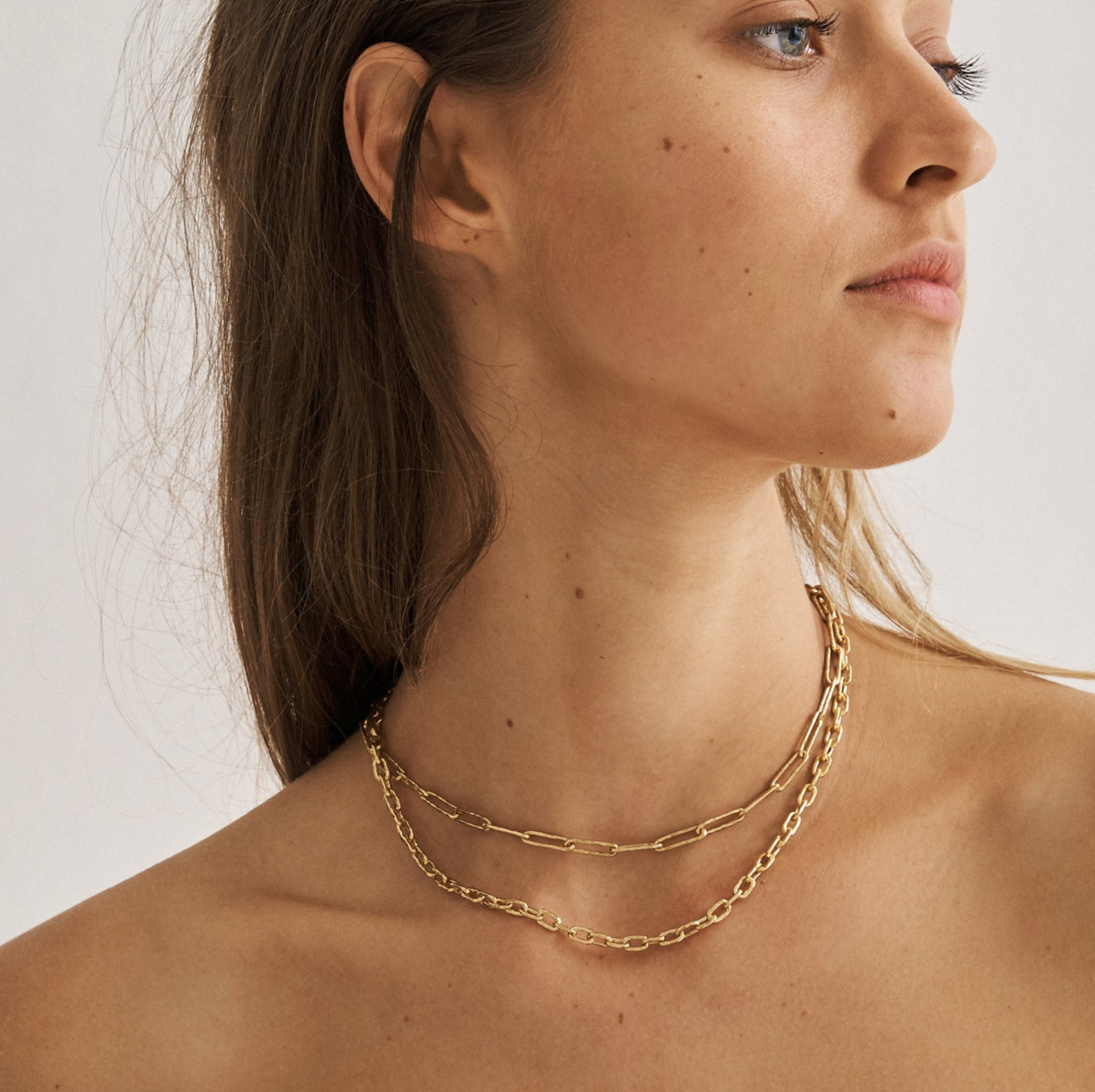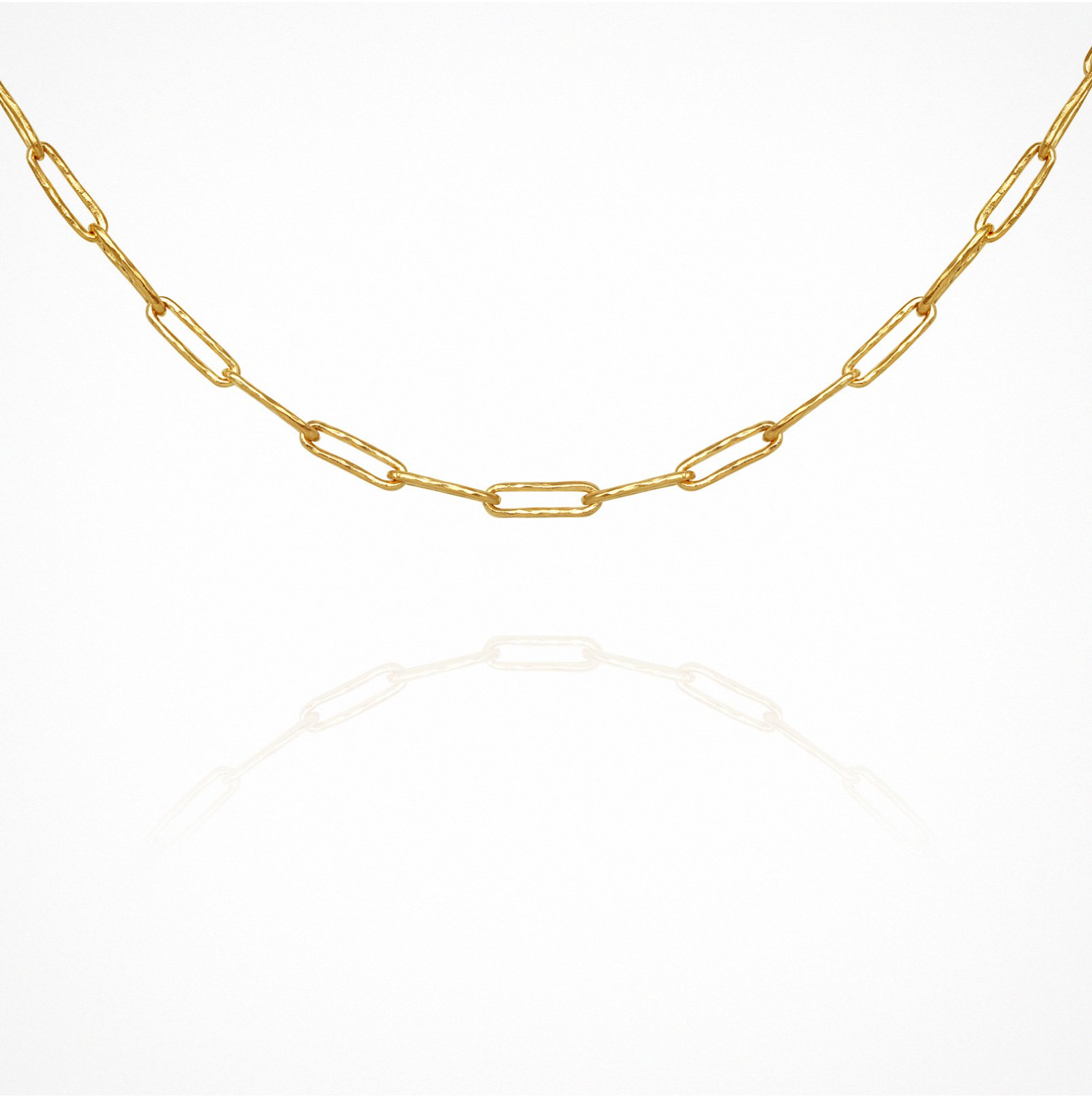 The Kiya Necklace, in tumbled 18K Gold Vermeil, is an opulent link chain that pays tribute to the gods and goddesses in Greek mythology who adorned themselves in golden jewels throughout the ages. Kiya, herself, was known as the greatly beloved wife of a Pharaoh Ankhenaten whom was held in great esteem by the king. This gorgeous necklace can be worn as a statement piece or effortlessly on its own.
