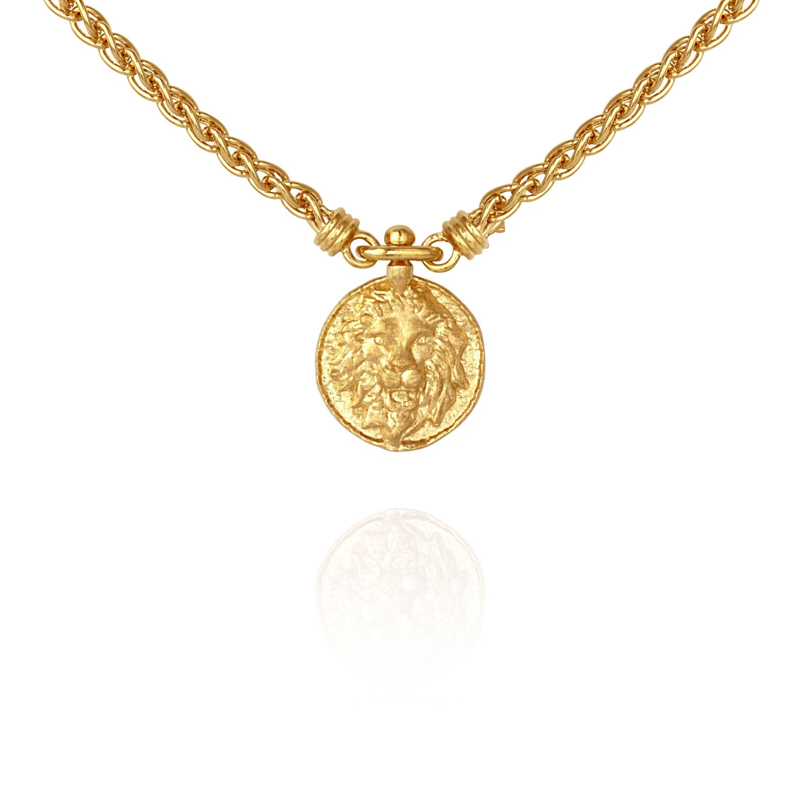 Throughout the ancient world, the vibrant yellow mane of the lion was the natural symbol of kings, who’s powers would shine like the sun over their domain. The lioness reflected that of protection and the Great Mother who would shine down and envelope her cubs in her unwavering love. The Leon Necklace in polished 18K Gold Vermeil on a thick woven chain is a necklace that embodies and radiates personal power, courage, wisdom and pride.