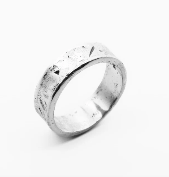 Crafted with consideration from ethically sourced 925 recycled silver, this band ring is complete with our signature etchings on its rugged facade.The Circadian II Ring is unisex.