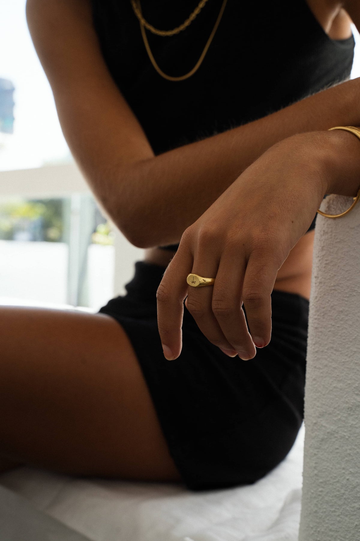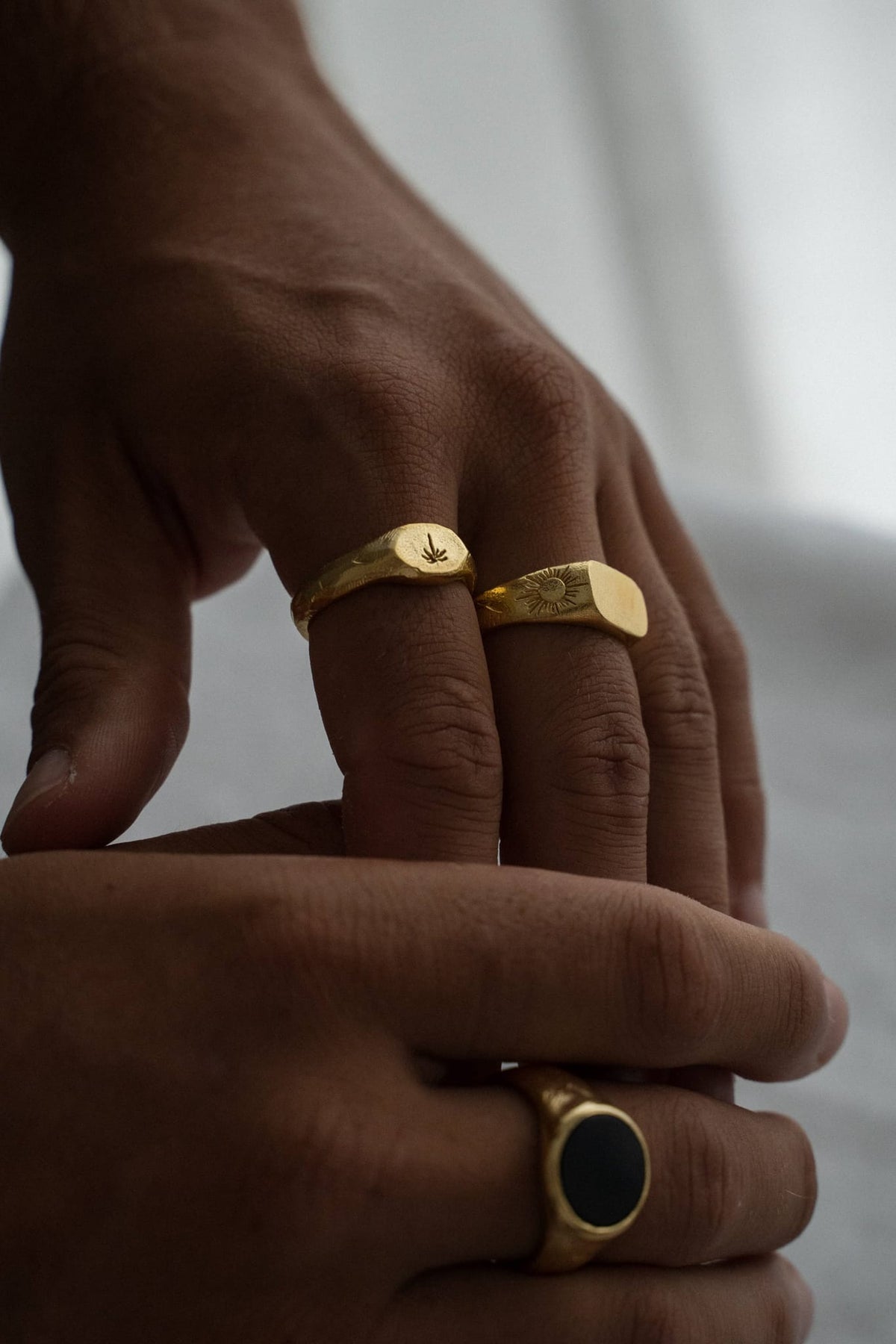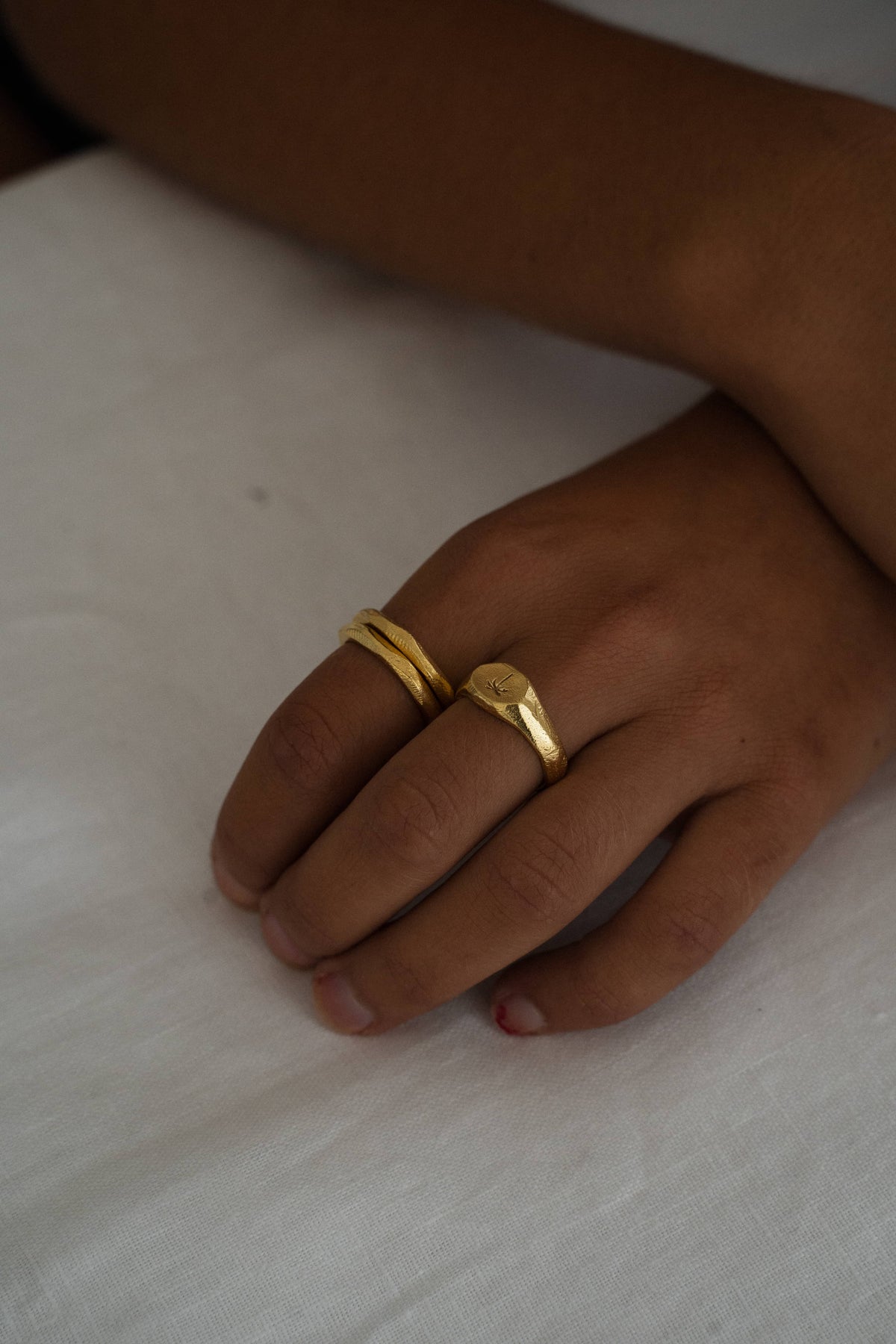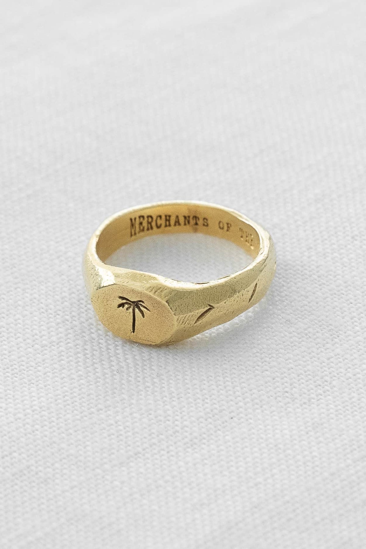 The small intricate design of the palm tree on the face of the ring really stands out in the gold.