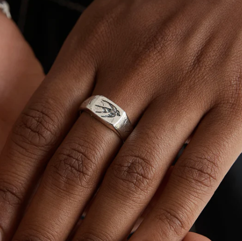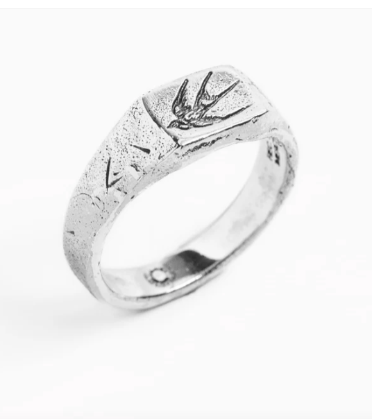 Lightly hammered edges portray the careful workmanship channelled into each piece. The Swallow Signet is unisex, designed to fit and suit you all.