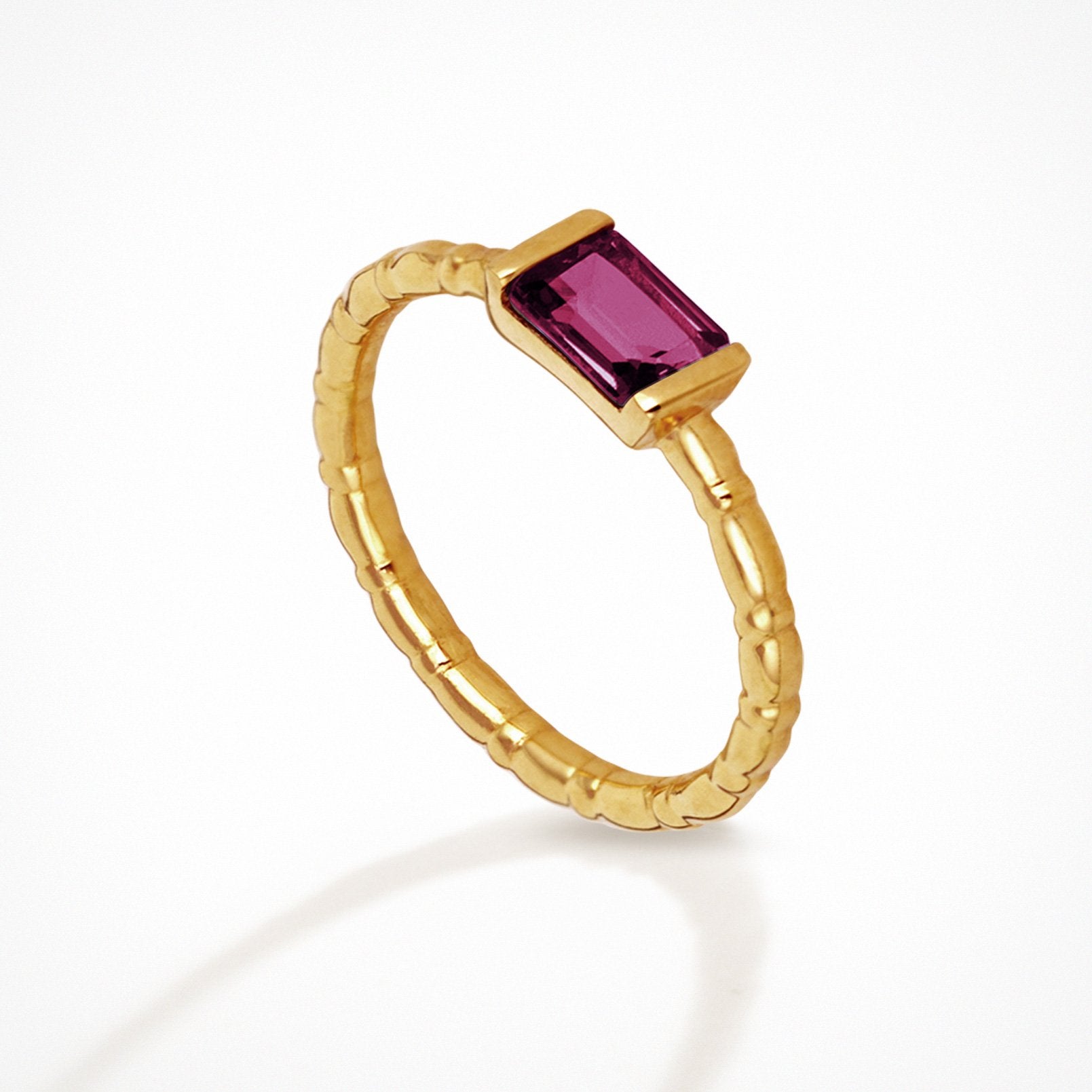 The Pia Ring in Polished 18K Gold Vermeil is an expression of simplicity and colourful radiance. The shimmering Octagon cut Rhodolite sits in the centre of the finger, and alleviates feelings of inadequacy, inspiring feelings of increased confidence and self-worth. The Pia Ring speaks to elegance and wholistic wellness.
