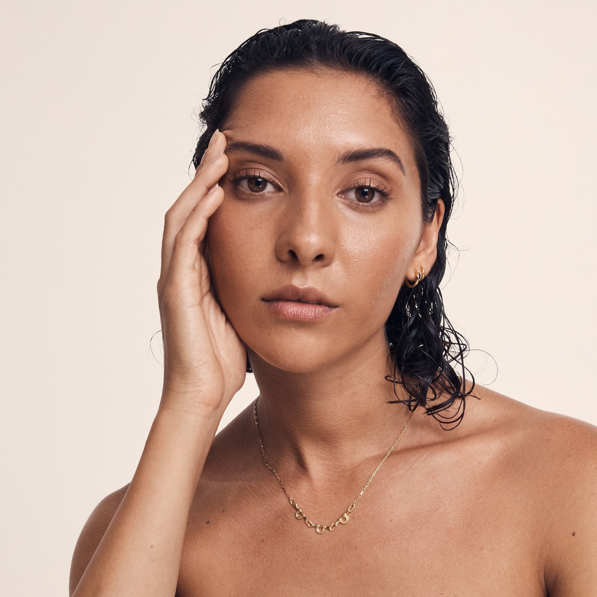 The Renata Arch Necklace in 18K Gold Vermeil is a longer style choker chain, sitting delicately across the collar bone. The ancients considered the act of passing through an arch to be symbolic of rebirth. Named from the Latin word for reborn, the Renata Arch Necklace speaks to the possibility of new beginnings.