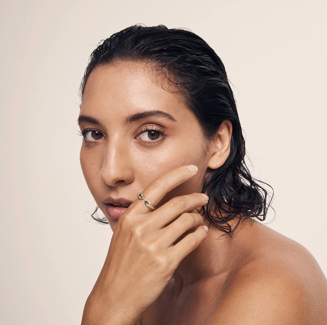 The Sarra Ring Apatite Gold in 18K Gold Vermeil is adorned with two pear cut Green Apatite gemstones. The Green Apatite represents abundance and new growth, honouring Persephone the goddess of Spring. An open circle, the Sarra Ring Apatite Gold speaks to possibilities and the vitality of renewal.