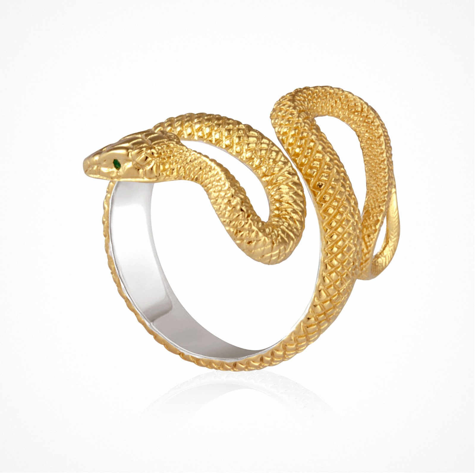 Serpents and snakes have always played an integral a role in religion, mythology, and literature; throughout the ages these mystical creatures have come to symbolise fertility and creative life force. The serpent’s shedding of its skin is very symbolic of rebirth, transformation, immortality, and healing within our lives. The Serpent Ring, in 18k Gold Vermeil with polished Sterling Silver on the inside, calls on the inner wisdom of its wearer; reminding them, with each new day, we’re given the opportunity to rebirth into the best versions of ourselves.