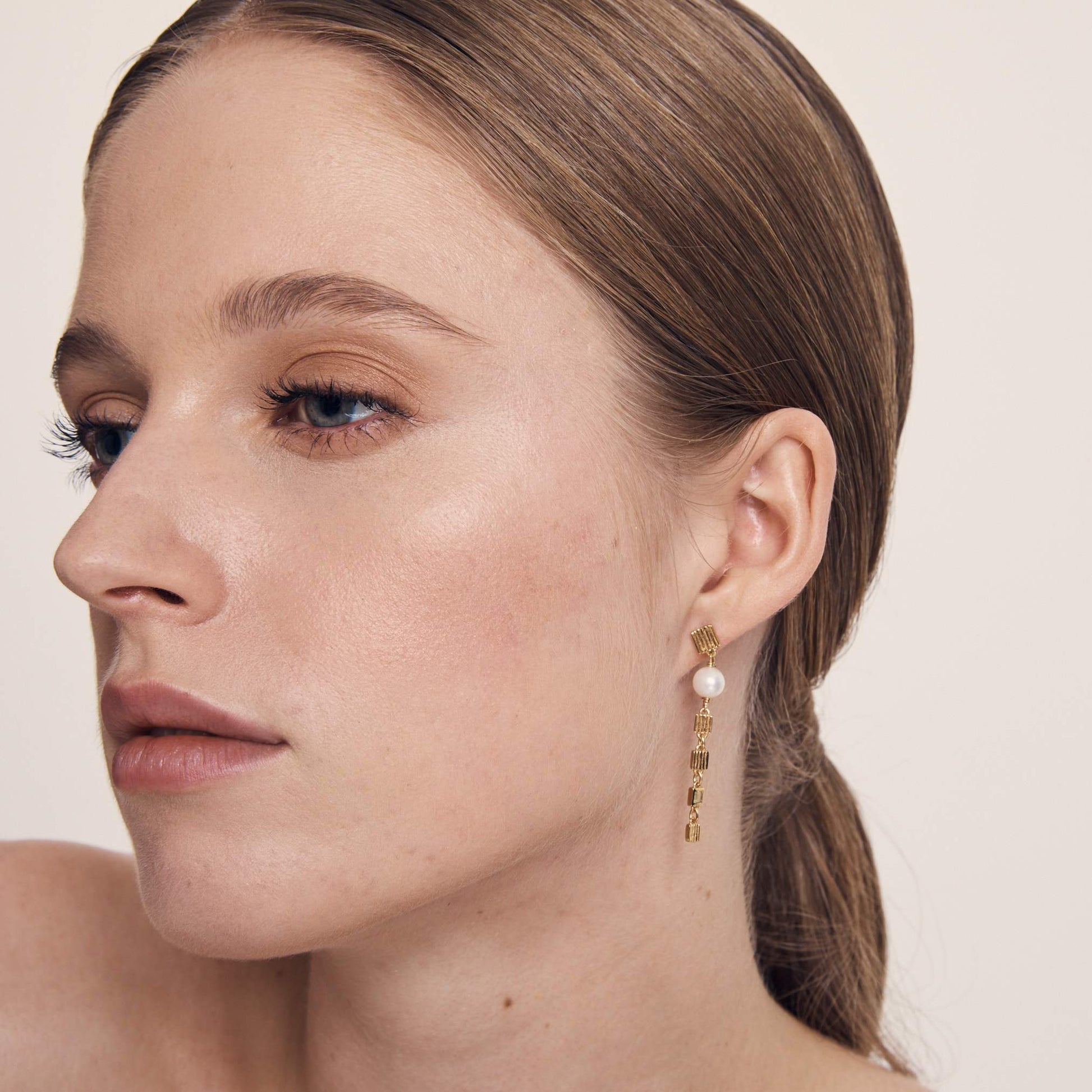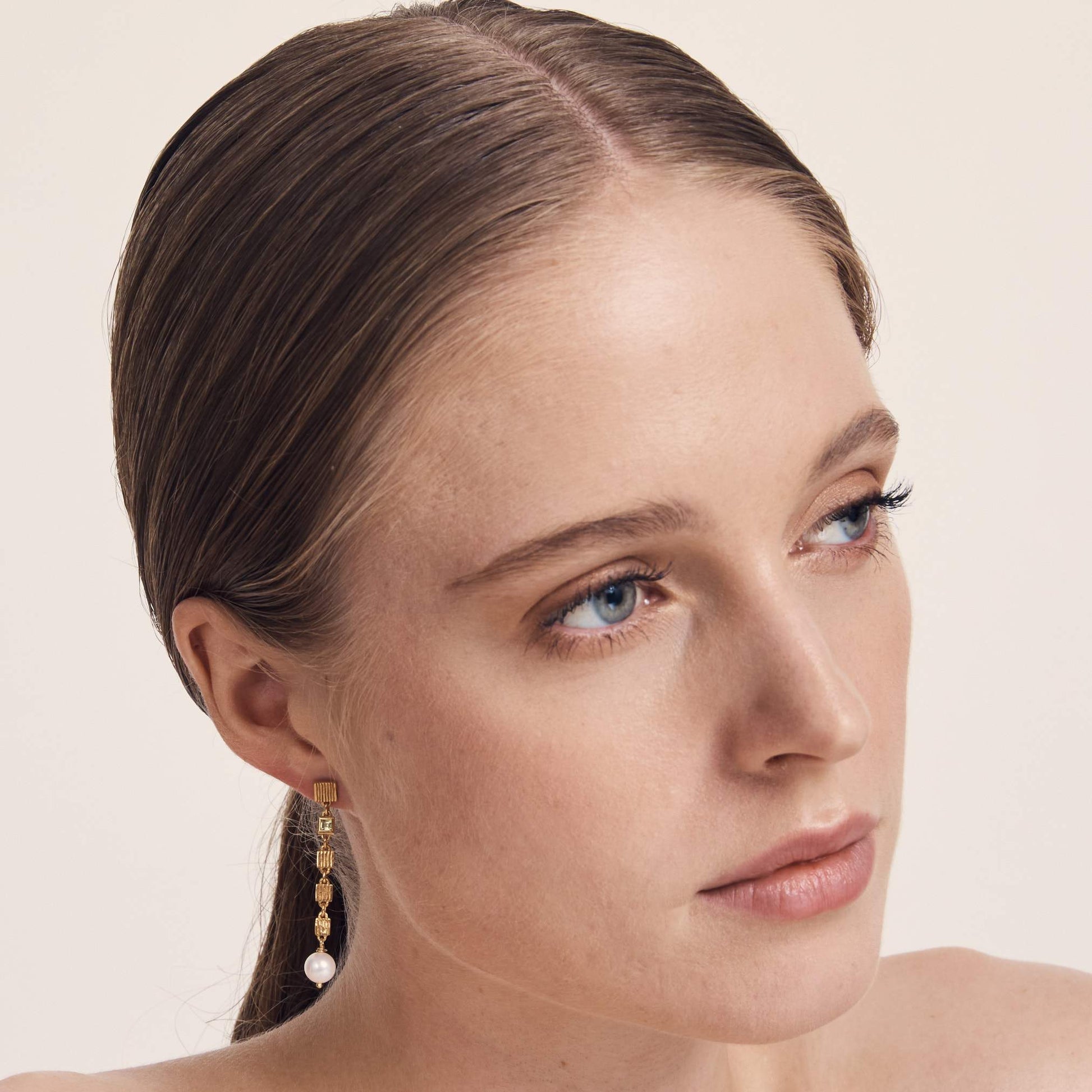 The Silvia Earrings in Polished 18K Gold Vermeil are both elegant and classic. The signature Freshwater Pearls bring calming feminine energy, with the princess cut Peridot used as a symbol of the Sun in Ancient Greek, Roman and Egyptian times. The Silvia Earrings speak to a refined elegance and feminine light.