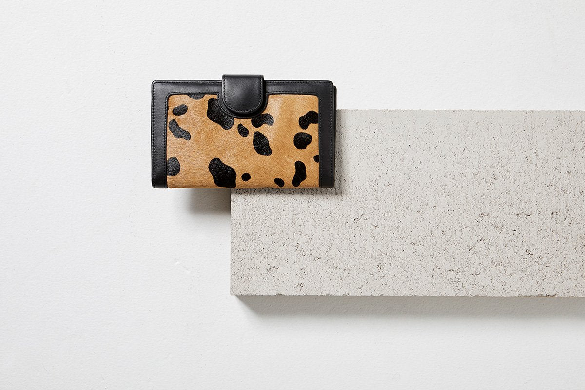 Doris is guaranteed to have your friends stroking her well groomed hide on first meet. Handcrafted from full grain leather & cowhide, it'll take some serious hoarding to fill her to capacity.