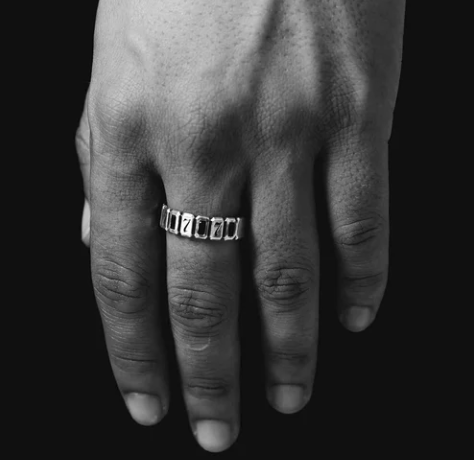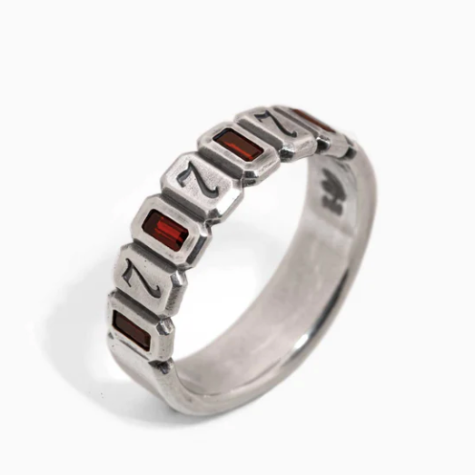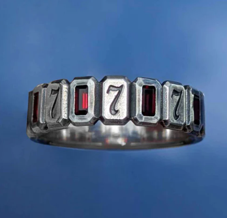 A Band Ring With 777 Engravings & Four Garnet Stones |