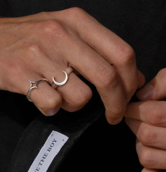 The Luminous Band Ring features a 12mm star tapered to a 3mm wide band, cast in 925 sterling silver.