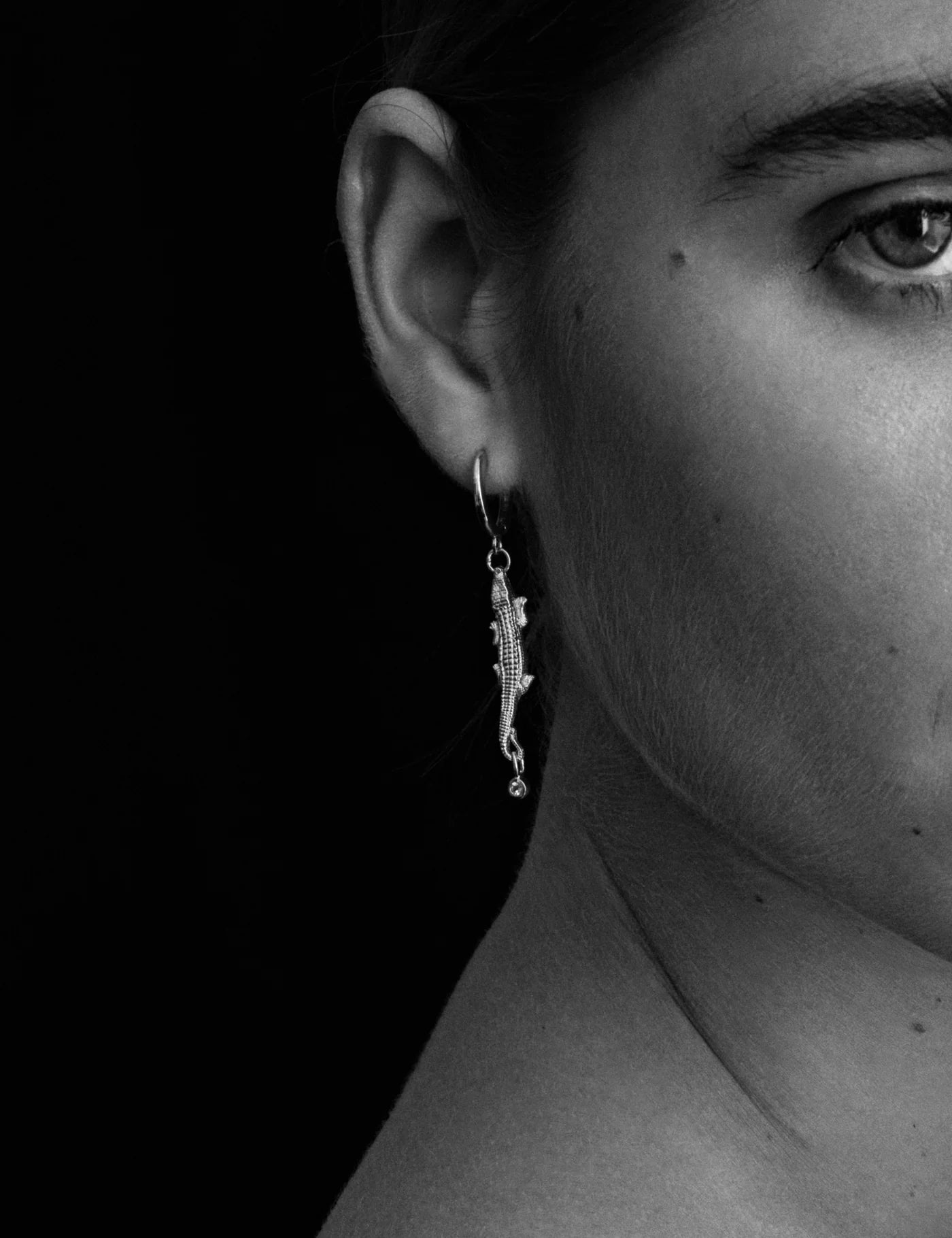 Crafted from recycled sterling silver, the Opi Earrings feature blue lace agate drops, suspended from fine chains and secured with hook fastenings.