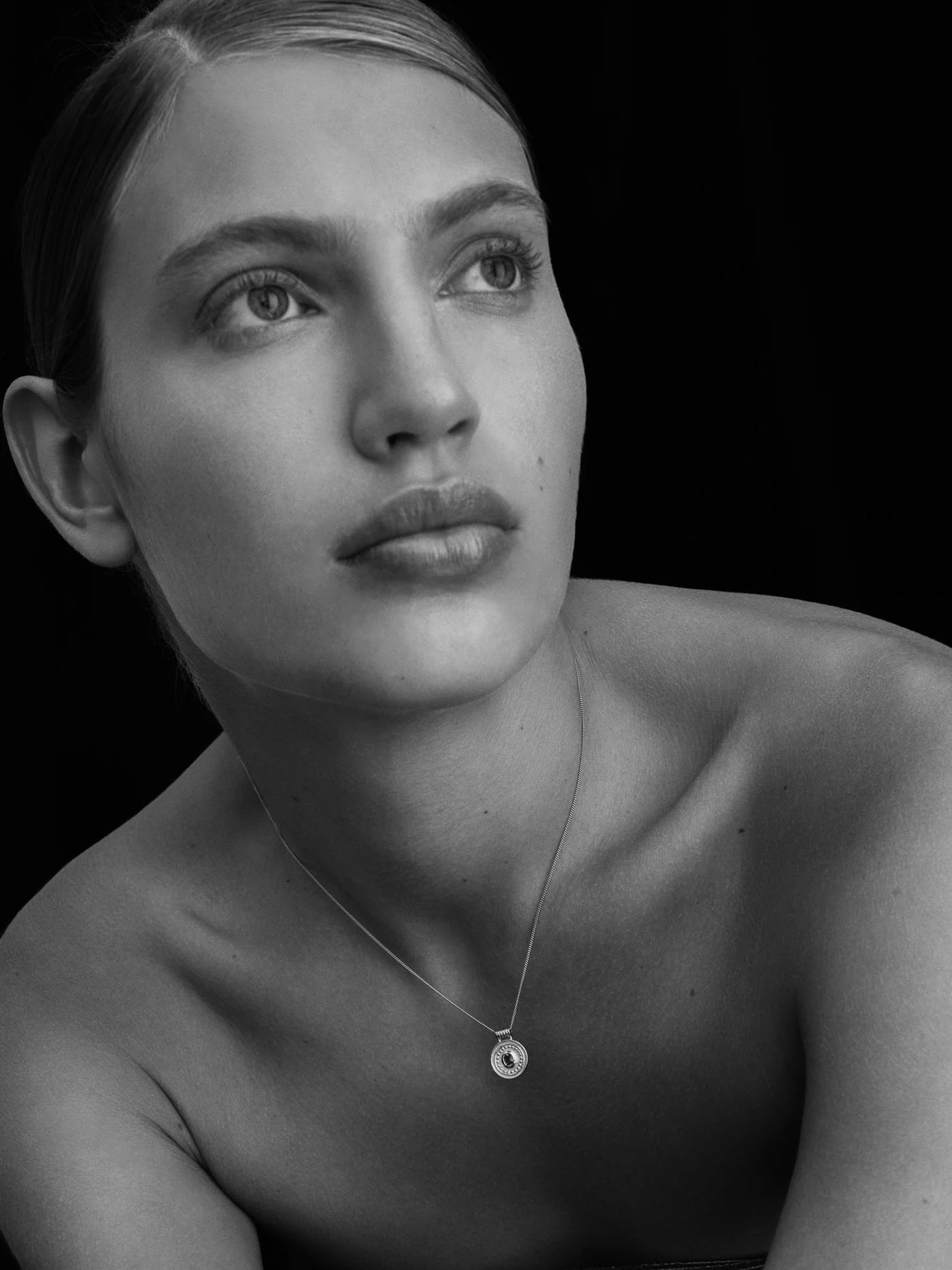 Named after a Roman coin denomination, this recycled sterling silver coin pendant is set with an oval rose-cut smoky quartz, symbolising grounding, transformation & manifestation.