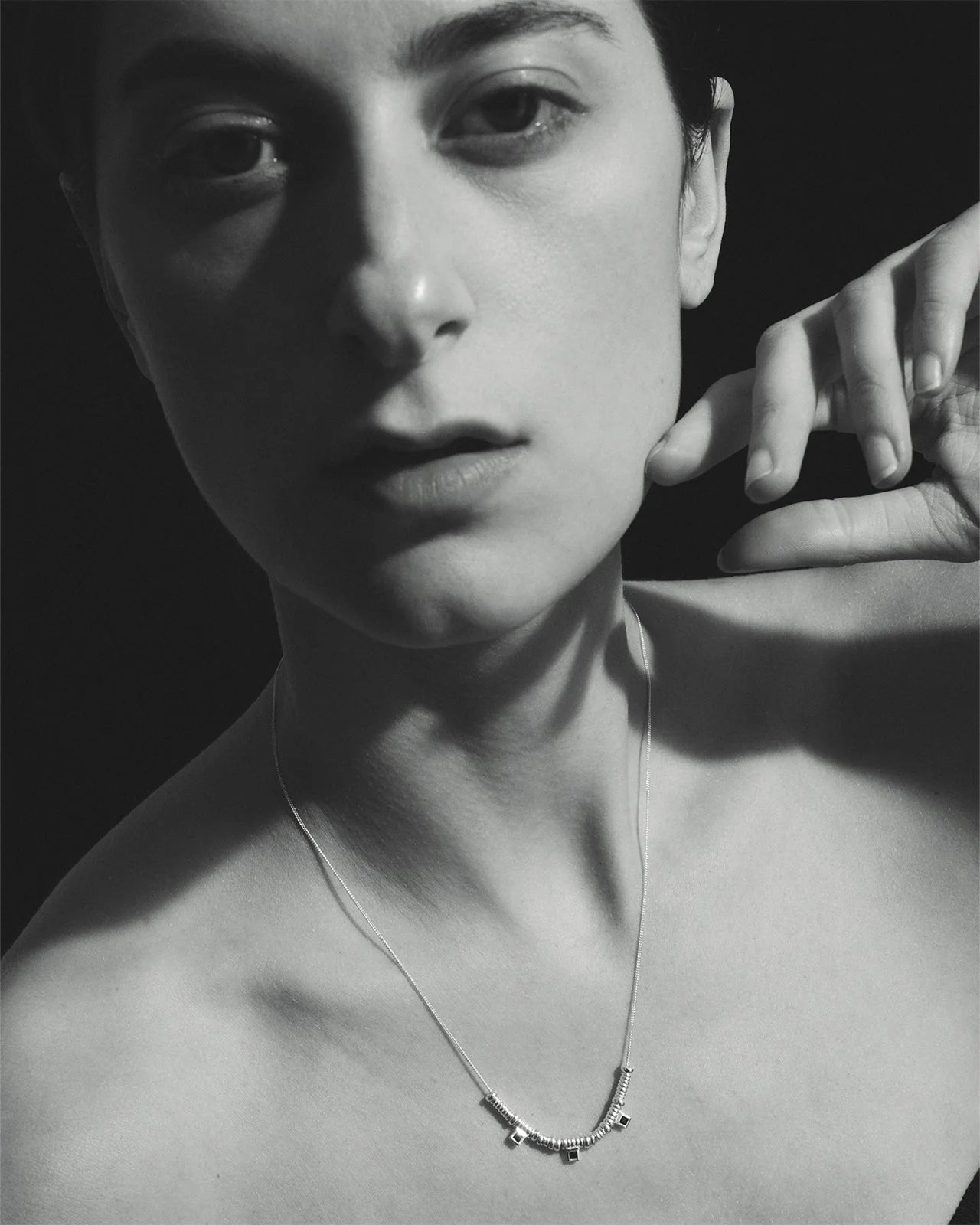 Playfully dancing along a fine curb chain, recycled sterling silver beads and princess-cut black spinel awaken spirits to everlasting vitality.