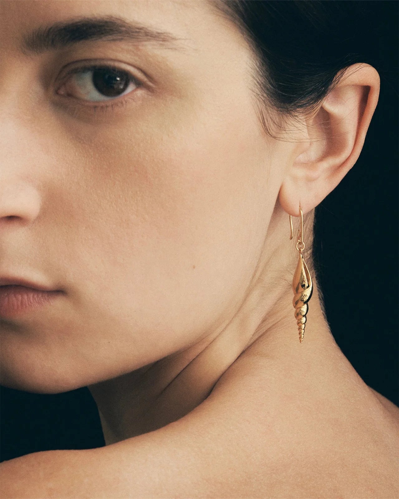 With spiralling contours echoing seaborne beginnings, these shell earrings channel a feminine mystique, inviting a graceful upward ascent.