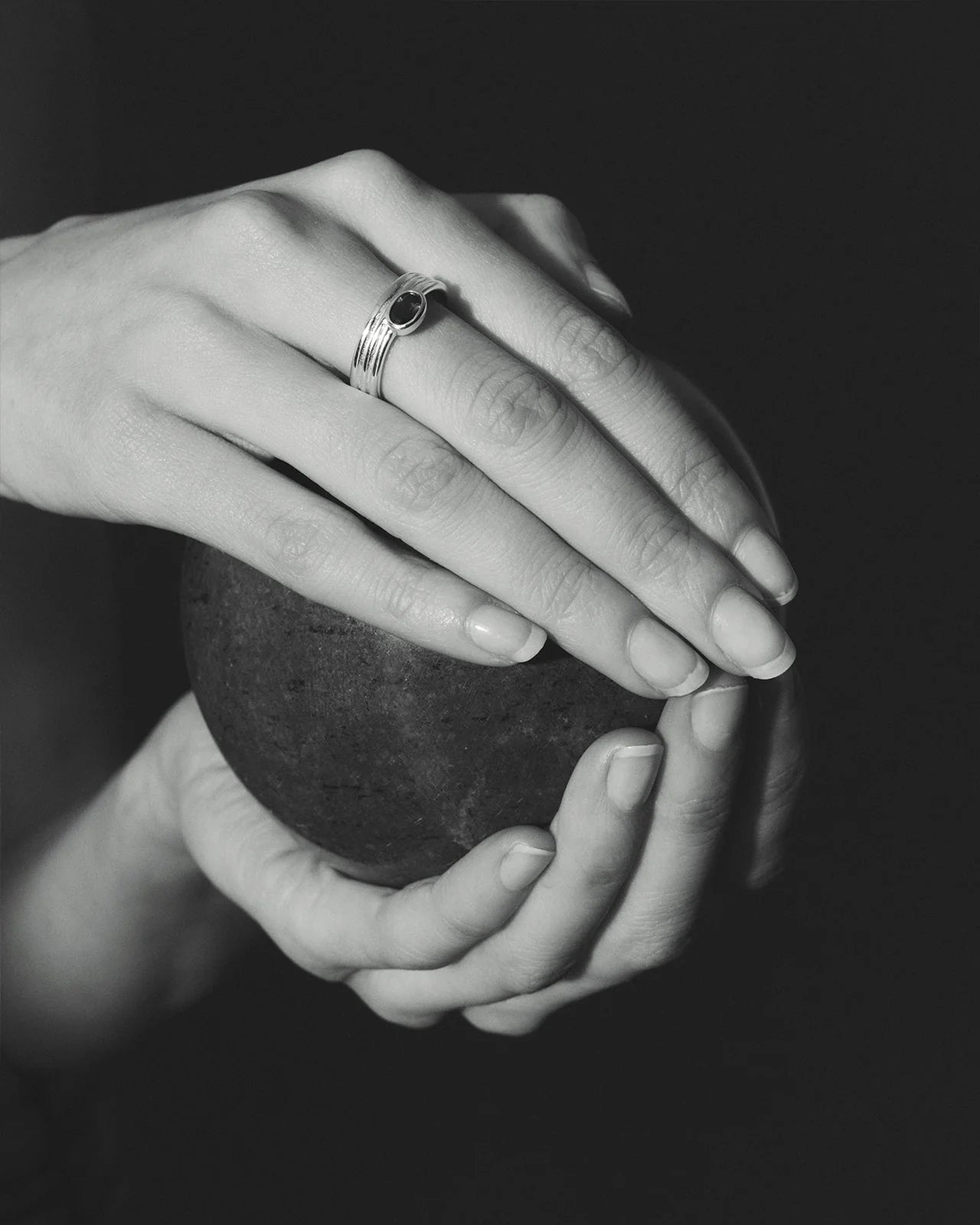 Igniting the fire within, the Tana Ring is a contemporary garnet ring crafted from 18k gold vermeil.
